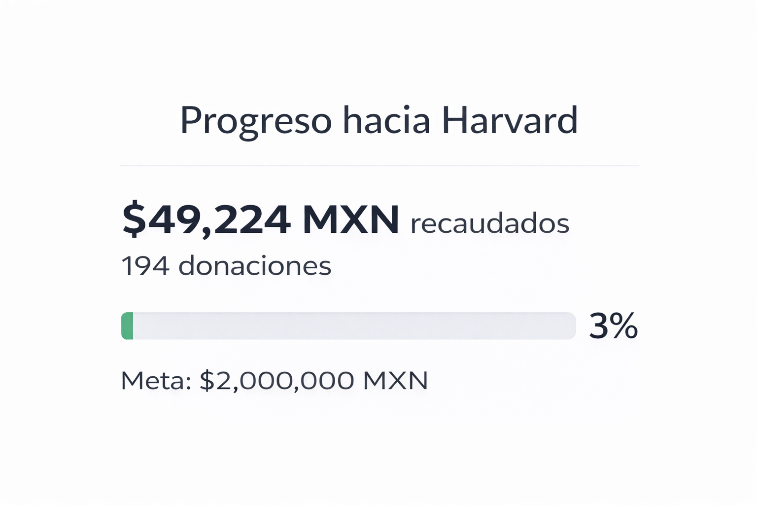 Fui aceptado a Harvard Kennedy School para estudiar una maestría en políticas públicas. Ahora estoy intentando hacer posible este sueño.Si quieres apoyar mi camino a Harvard, hay tres formas muy simples:1. Donar: Incluso $50 pesos hacen la diferencia. Cada donación acerca este sueño un poco más.